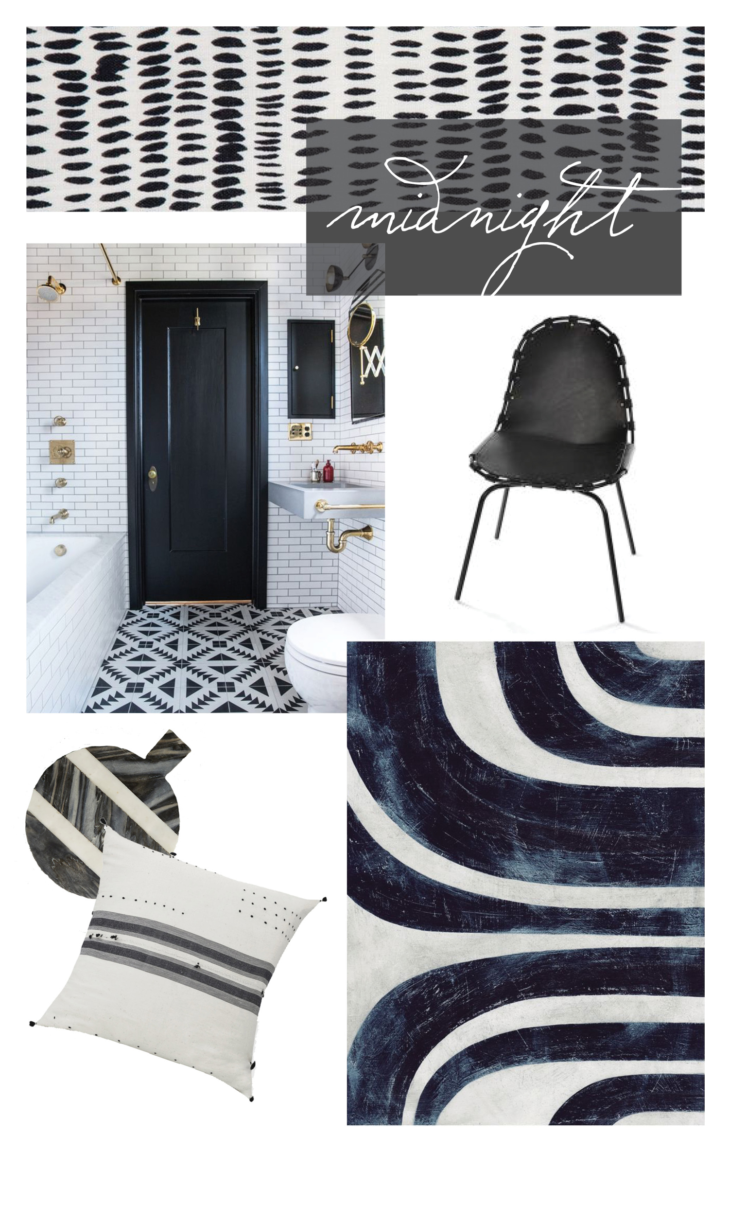 FABRIC // Dashes in Midnight from Rebecca Atwood // Chair // Art // Pillow // Cutting board // Interior