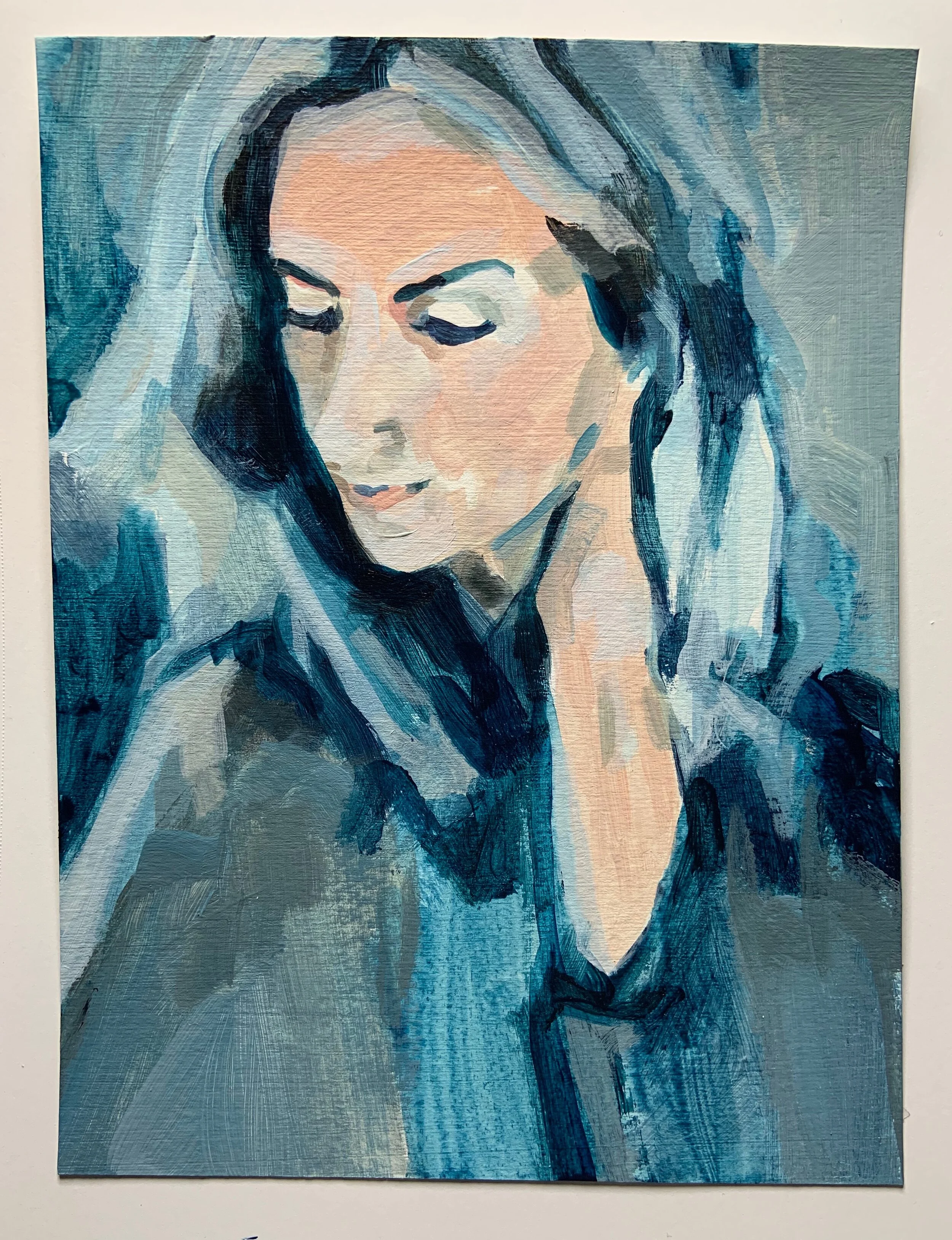 In addition to strengthening her community of peers, Mia has found more time to work on her “Glimpses” series —a gathering of fragmented figures that will eventually make up a display of 100 individual pieces. The idea behind this project is to create a community of people. Because they are fragmented, the viewer is unsure of the story behind them upon first glance: “when you look at them, it becomes a little bit about you, about what you’re taking in… they are alone, but find a sense of togetherness when they are aligned in a grid format.” The ambiguous narrative that is created by each of these fragmented portraits allows a unique viewer experience, giving more freedom to the imagination.