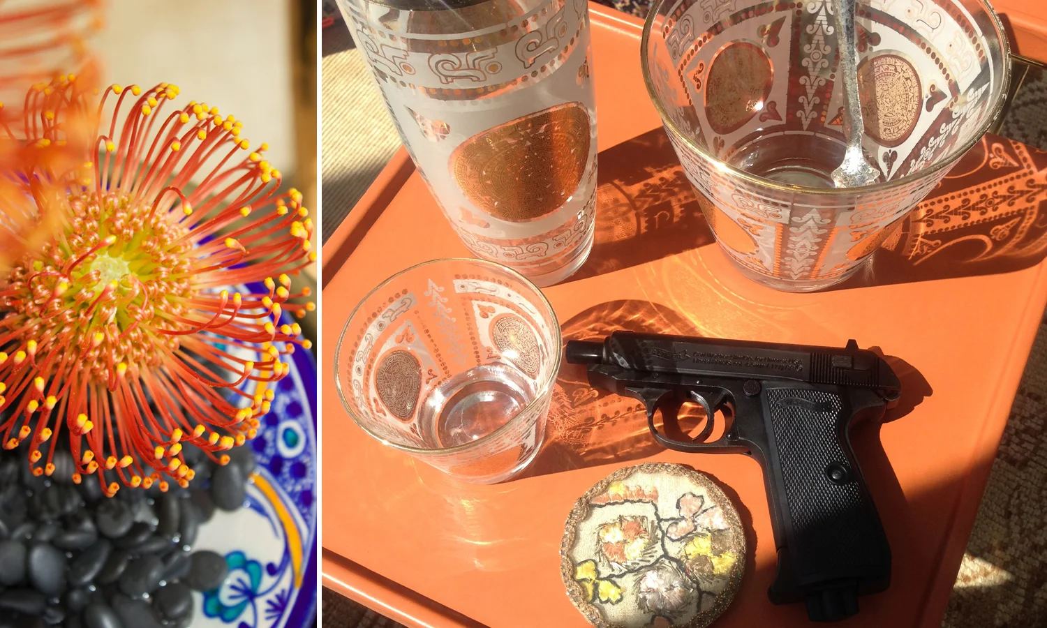 ABOUT CLOTH & KIND'S GOLDFINGER INSPIRED WINDOW // We chose Ian Fleming’s Goldfinger for a variety of reasons. First, who does not love the dashing and dapper agent 007 James Bond?! We consider the post-war era of the book a wildly pivotal period for art, furniture and lighting design. It was a time that eschewed the formalism of the 40s and 50s and embraced a non-conformist mix of styles, patterns, periods and colors. This speaks to our design aesthetic fundamentally as we often times favor mid-century modernism over other eras of furnishings, for being lean and mean, glamorous and sophisticated. Oh, and the cheeky, sexy tone of the novel allowed for playful interpretation of gilded nudes and metallic hues throughout, which we always adore.